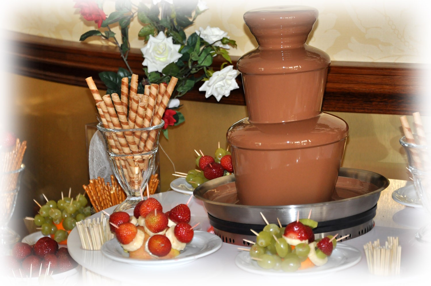 ferujemy nowy wymiar w organizacji uroczystej rozrywki. Proponujemy wynajęcie podświetlanej fontanny czekoladowej na wesele, komunię, urodziny dziecka, bankiet, wieczór panieński, spotkanie towarzyskie, imprezę firmową.
