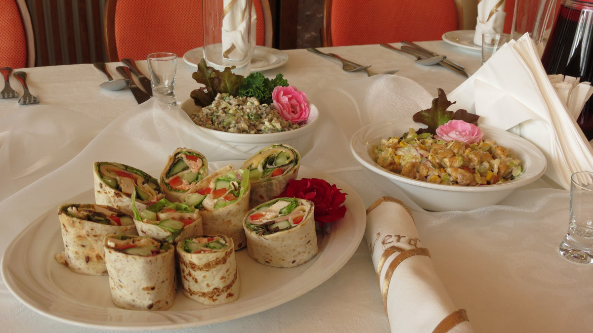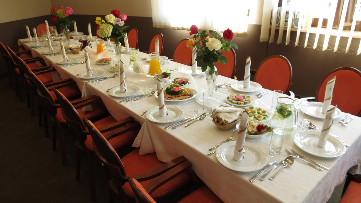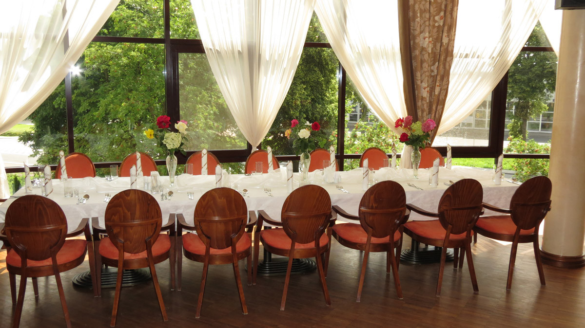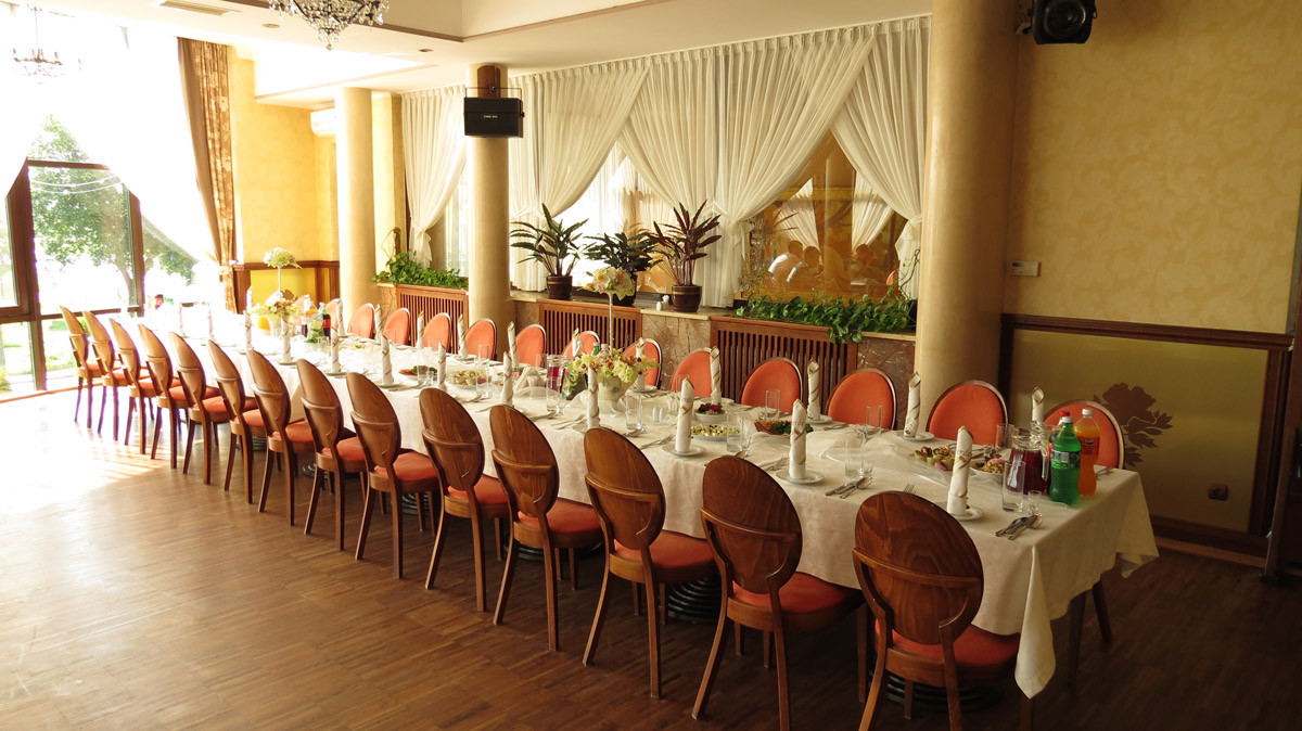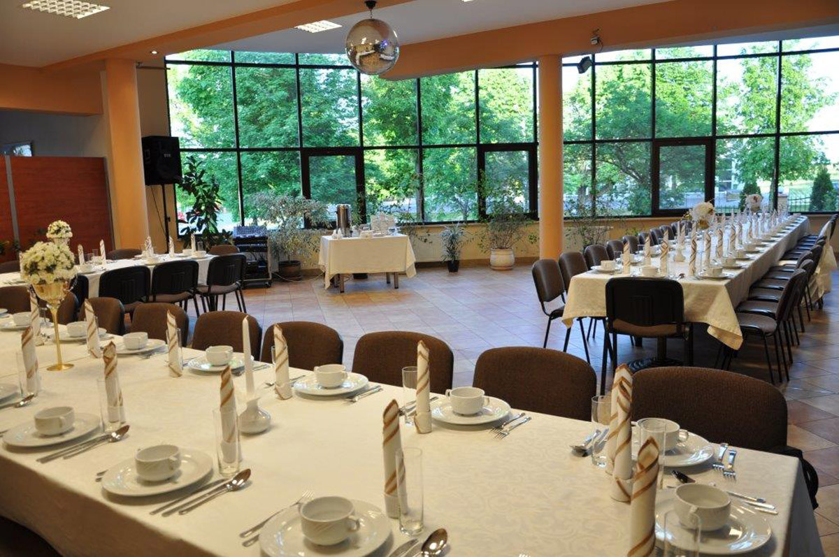 Proponujemy organizację przyjęć na prawie każdą okazję. Dostosujemy restaurację lub salę bankietową specjalnie do Państwa potrzeb i sugestii. Do dyspozycji Gości pozostaje przestronna i jasna sala bankietowa. Pomieszczenie dedykowane jest do przyjęcia 70 osób. Odpowiedni układ stołów i krzeseł dostosujemy do charakteru wydarzenia oraz liczby uczestników.