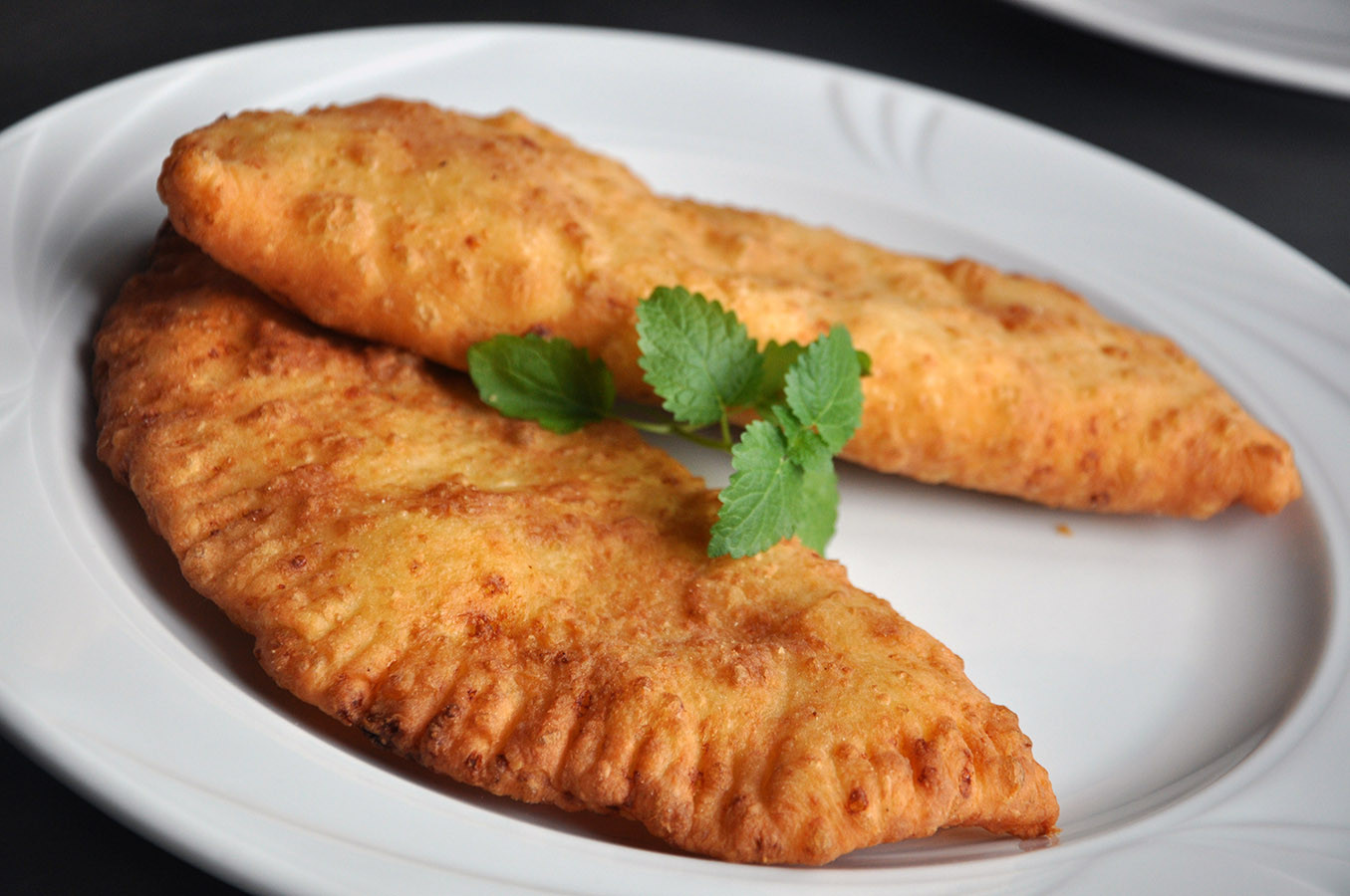 | Czebureki Pyszne placuszki pochodzenia Tatarskiego, nadziewane soczystym mielonym mięsem, podane z rosołem. (czas oczekiwania ok. 30 minut) |