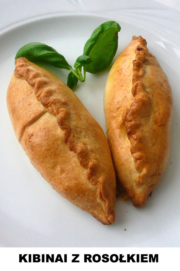 | Kibinai Wyśmienite pieczone pierogi pochodzenia karaimskiego z twardym kruchym ciastem i mnóstwem siekanego mięsa wieprzowego z cebulką i pieprzem w środku, podane z rosołem. (czas oczekiwania ok. 20 minut) |
