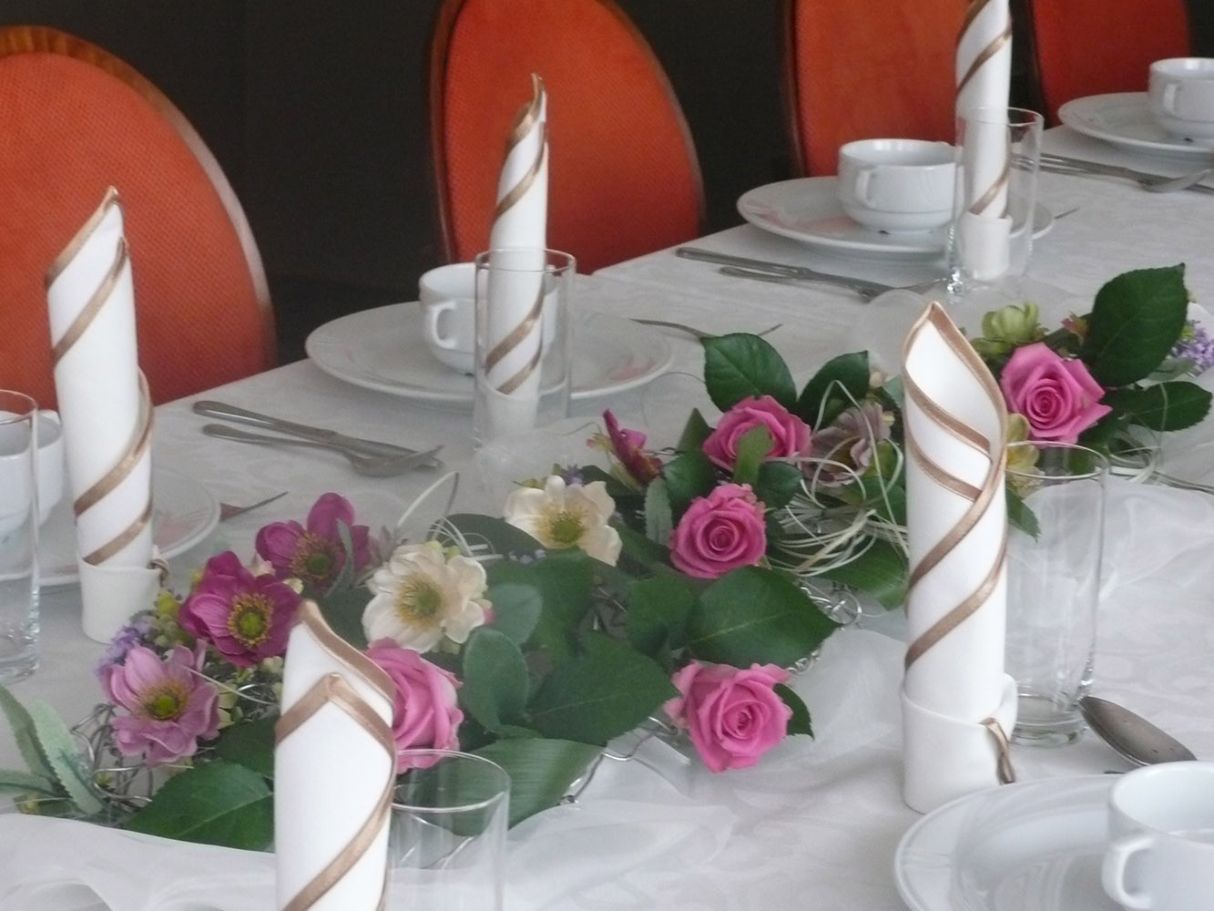 Proponujemy organizację przyjęć na prawie każdą okazję. Dostosujemy restaurację lub salę bankietową specjalnie do Państwa potrzeb i sugestii. Do dyspozycji Gości pozostaje przestronna i jasna sala bankietowa. Pomieszczenie dedykowane jest do przyjęcia 70 osób. Odpowiedni układ stołów i krzeseł dostosujemy do charakteru wydarzenia oraz liczby uczestników.